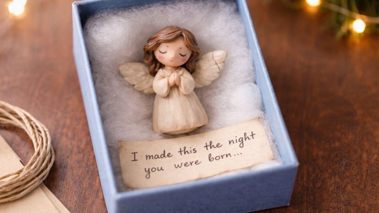 When my mother passed away, I had a dream about her. She seemed worried and told me, “Emily, check the blue box.” I woke up confused, as I had no recollection of any blue box. A few days later, while going through her belongings, I found a small blue box wrapped with a rubber band, pushed to the back of her closet. Inside was a tiny clay angel, carefully painted with a small crack repaired on one wing. Underneath it was a note in her handwriting: “I made this the night you were born. I was terrified of getting everything wrong, but I asked for help and made this as a reminder that you were never alone. You were never alone, and neither was I.” I never knew she made things with her hands, and I never knew she was scared. I keep the angel on my nightstand, with the cracked wing facing out.