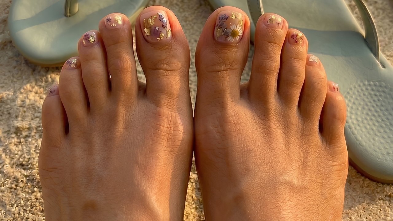 Floral pedicures enhanced with gold leaf are a massive trend for 2026, combining soft dried petals with shimmering metallic accents. This style merges romantic botanicals with high-fashion opulence, creating a look that feels like wearable art. Perfect for the nature-driven aesthetic of the year, this pedicure pairs beautifully with earthy-toned sandals and beachwear.