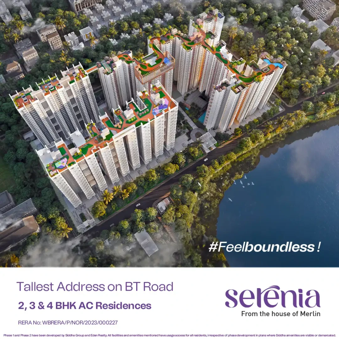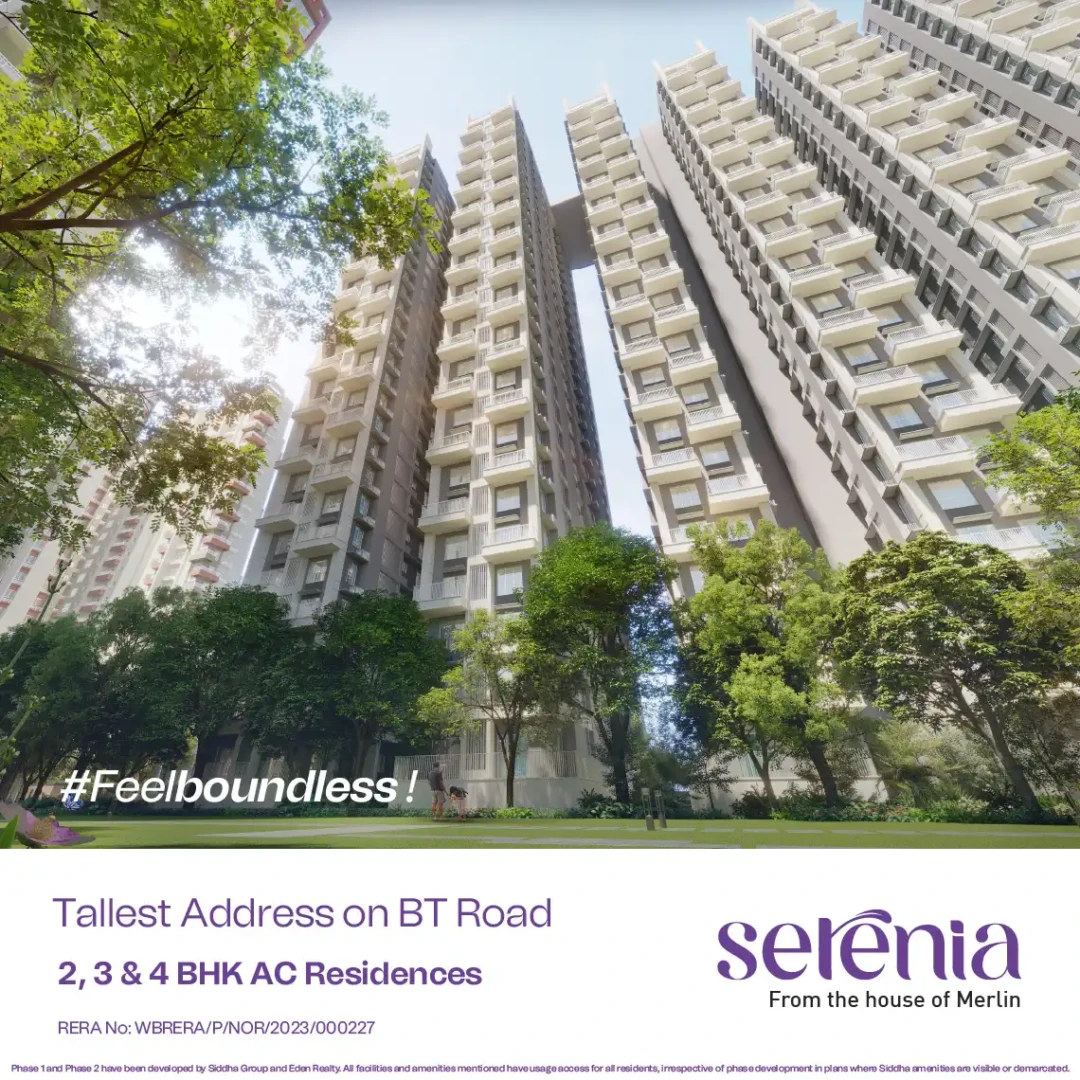 Discover the perfect fusion of urban sophistication and natural serenity at Merlin Serenia. Located on BT Road, Kolkata, Merlin Serenia, crafted by Merlin Group, presents a diverse range of residential choices for discerning home seekers. Hearth and Home proudly introduces a selection of spacious and stylish apartments in this esteemed development. Whether you seek a 2 BHK, 3 BHK, or 4 BHK residence, Merlin Serenia offers options tailored to your preferences. These residences are meticulously designed, blending modern aesthetics with functional layouts to ensure efficient space utilization. Positioned advantageously on BT Road, residents benefit from easy access to nearby schools, hospitals, shopping centers, and entertainment venues. Experience the pinnacle of contemporary living and comfort at Serenia, exclusively available through Hearth and Home.