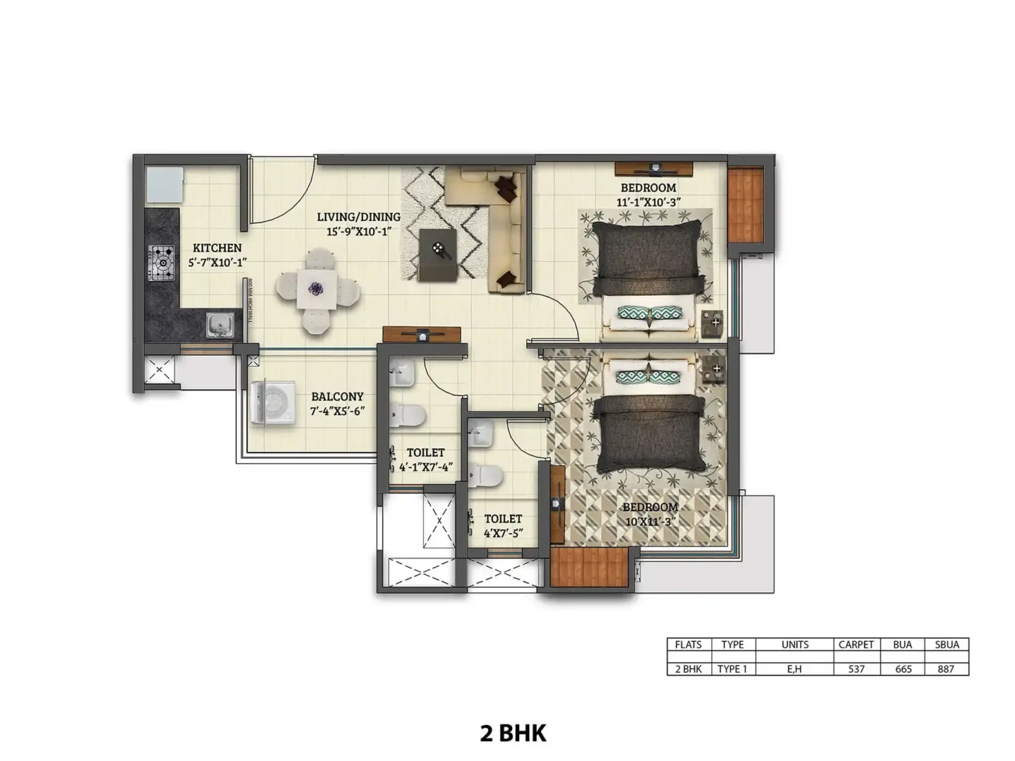 2 BHK 887 sq ft ₹ 29 L Onwards