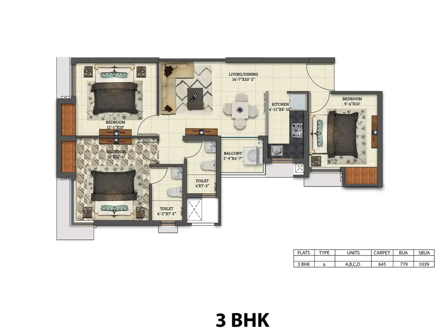 3 BHK 1,039 sq ft ₹ 33 L Onwards