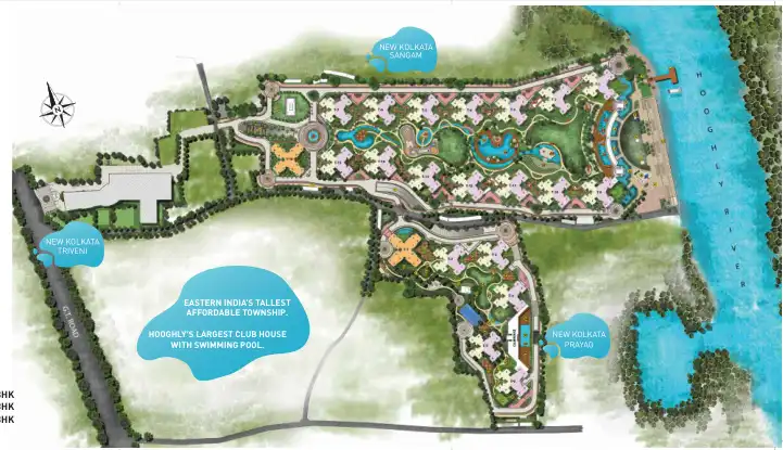 Comprising 16 residential towers, The New Kolkata Sangam epitomizes premier residential living in Serampore, enveloped by lush greenery across its expansive 19-acre expanse. Beyond providing just an apartment, it offers a serene paradise dedicated to delivering the comforts and conveniences of modern living, meeting both neighborhood and project requirements alike.